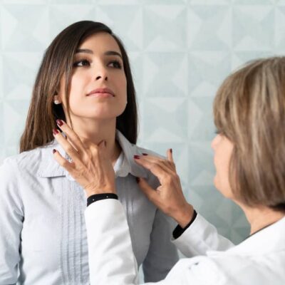 Hyperthyroidism occurs when the thyroid gland makes too much thyroid hormone. It is most often due to Graves disease (autoimmune stimulation), toxic nodules, or thyroiditis. This speeds up the body’s metabolism and can cause weight loss, rapid heartbeat, anxiety, tremors, and heat intolerance. Diagnosis is confirmed by suppressed TSH and elevated T3/T4. Treatment options may include medication, radioactive iodine, or surgery.